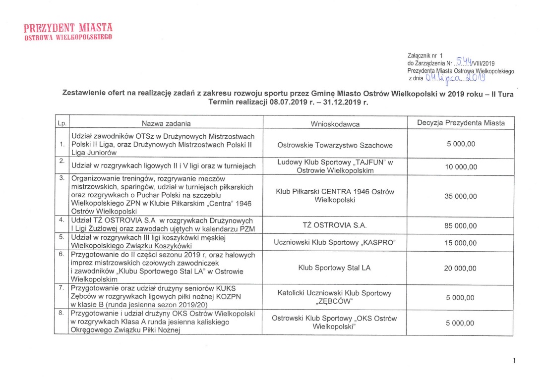 Poznaliśmy wyniki konkursu ofert na realizację zadań z zakresu rozwoju sportu przez Gminę Miasto Ostrów Wielkopolski w II turze na rok 2019. Najwyższą dotację w kwocie 125 tysięcy otrzymał klub BM Slam Stal S.A. Ostrów Wielkopolski.
