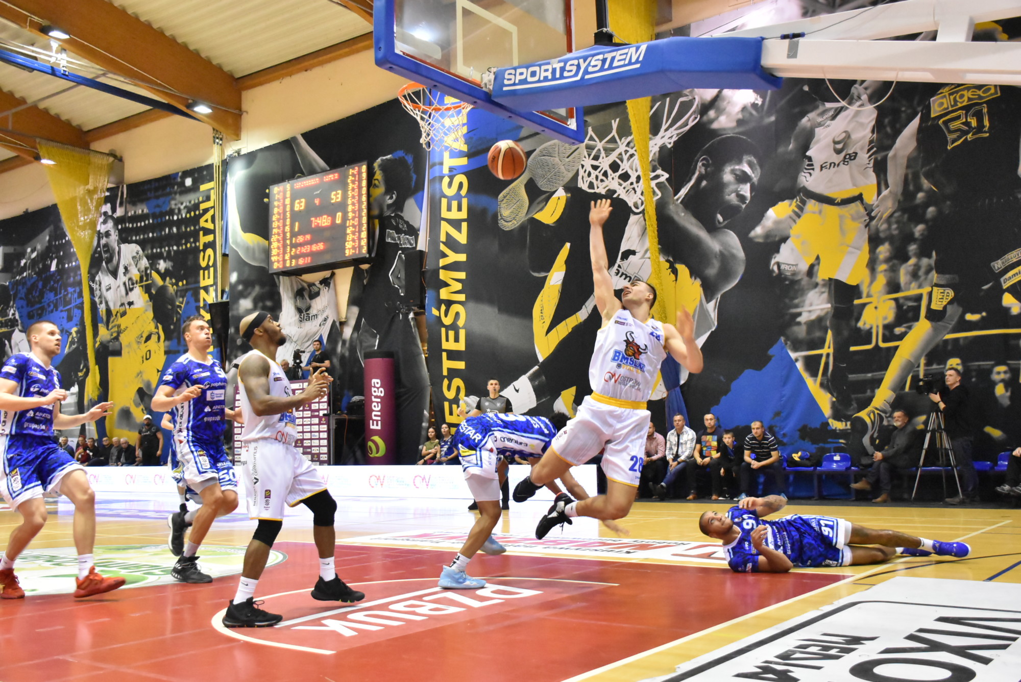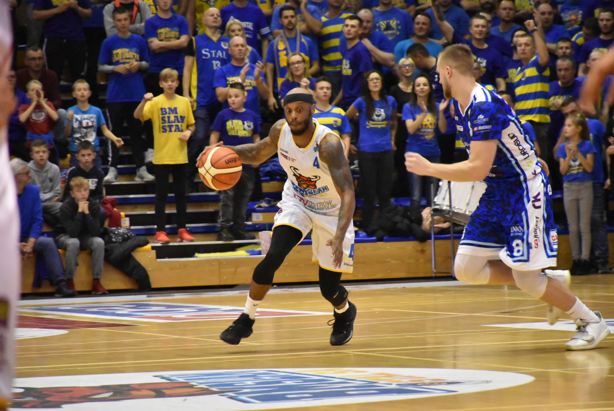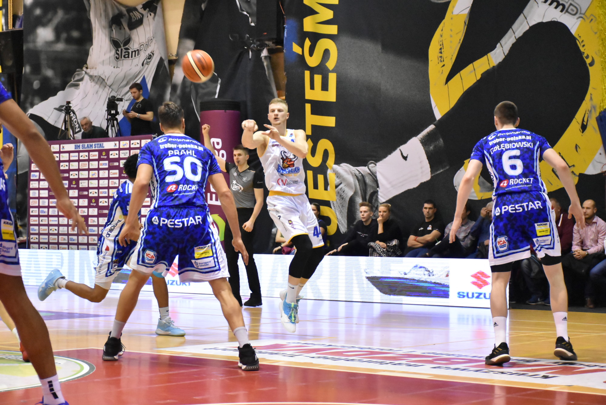 Po pierwszej kwarcie było 26:14, a zakończył ją celnym rzutem z dystansu w samej końcówce Jarosław Mokros. Zdecydowanie najlepszy mecz w barwach BM Slam Stali grał Nikola Jevtović. Serb do przerwy miał 10 punktów, zdobyte na 80 procentach skuteczności. Do tego dołożył 6 zbiórek. Zakończył spotkanie z mocnym double-double 15 punktów i 13 zbiórek. Żeby tylko jeszcze był bardziej skuteczny w rzutach z linii. Nie można jednak wymagać cudów. Postęp w jego grze jest widoczny.