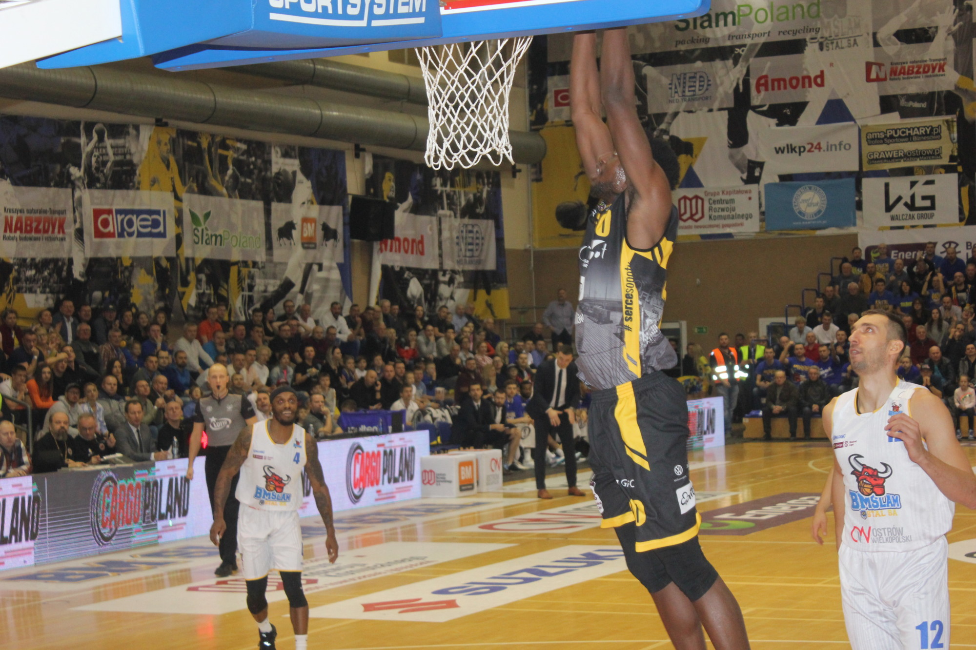 Do przerwy kibice oglądali najlepiej w tym sezonie grającą BM Slam Stal Ostrów. Po 20 minutach zespół Łukasza Majewskiego prowadził 47:36. W pierwszej kwarcie grę ostrowian napędzał Jay Threatt, a w drugiej jak natchniony trafiał Przemysław Żołnierewicz. Popularny „Żołnierz” do przerwy miał na koncie 17 punktów na 85 procentowej skuteczności w rzutach z gry. Trafił 4 na 5 prób z dystansu i to w głównej mierze dzięki niemu, BM Slam Stal miała 11 punktów przewagi.