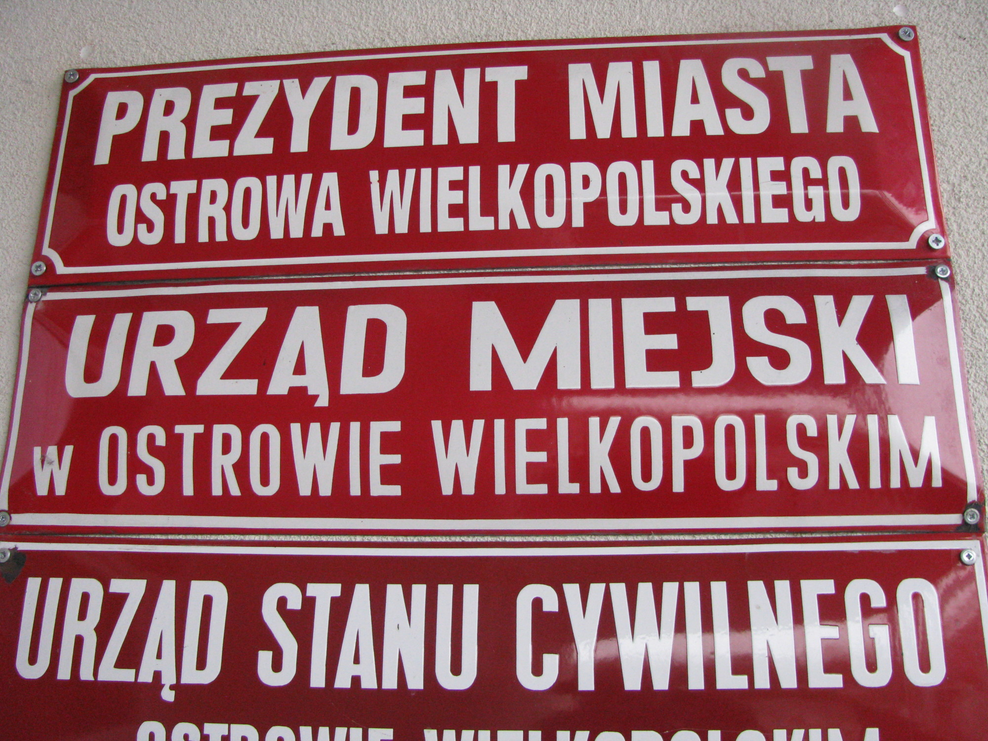 Przekraczając drzwi gruntownie zmodernizowanego przybytku dowiadujemy się, że jesteśmy w instytucji pod nazwą „Urząd Miasta w Ostrowie Wielkopolskim”. Co innego, gdybyśmy zechcieli odwiedzić główny gmach magistratu. Tam, jak do tej pory, wita nas cały szereg czerwonych tablic. Wśród nich ta z napisem „Urząd Miejski w Ostrowie Wielkopolskim”. Czym prędzej wchodzimy więc na oficjalny portal miejski. W zakładce z danymi teleadresowymi znajdujemy wersję z przymiotnikiem – „Urząd Miejski w Ostrowie Wielkopolskim”.