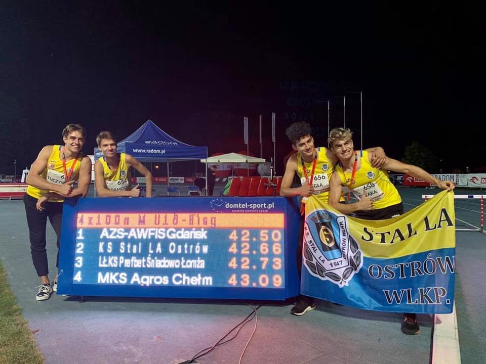 Jechali na 52. PZLA Mistrzostwa Polski U18 do Radomia z pierwszym czasem w rankingach ogólnopolskich i potwierdzili, że tej kategorii wiekowej należą do ścisłej krajowej czołówki. Sztafeta 4×100 metrów KS Stal LA Ostrów w sobotni wieczór zdobyła srebrny medal. Złoto było blisko, ale szybsi byli sprinterzy AZS-u AWF-u Gdańsk. Srebro dołożył także w skoku w dal Jakub Tuczyński, który o 19 centymetrów pobił rekord życiowy.