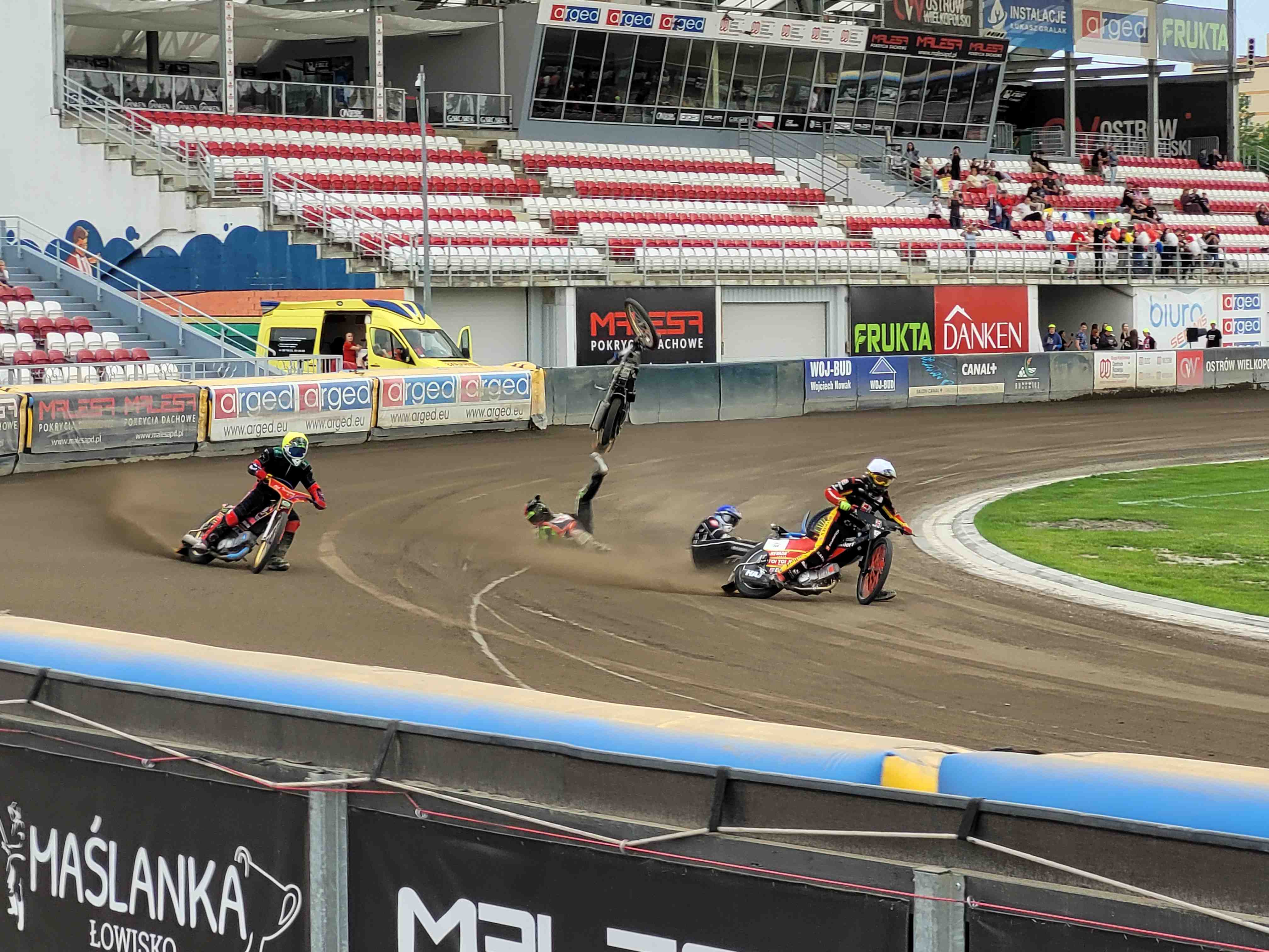 W zawodach dochodziło do kilku niegroźnych upadków do wyścigu 23. Tam na wejściu w pierwszy wiraż motocykla nie opanował jadący pierwsze zawody amatorów w życiu Adrian Bryja, który zahaczył o Bogdana Barteczkę. Wypadek wyglądał bardzo groźnie. Motocykl Bryji wystrzelił w powietrze, ale szczęście w nieszczęściu, że nie spadł na żadnego zawodników. Obaj szybko podnieśli się z toru, ale później okazało się, że Bryja wymagał interwencji lekarskiej i najprawdopodobniej złamał obojczyk.