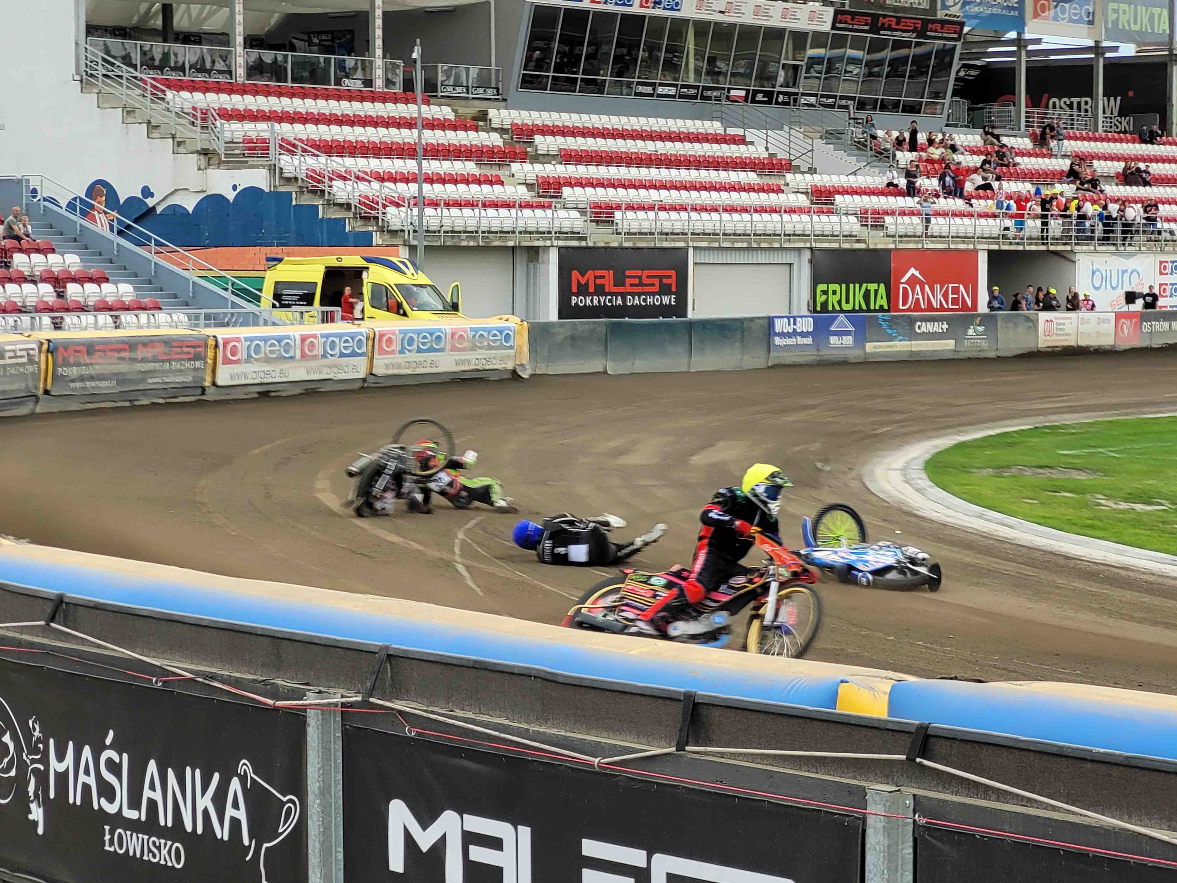 W zawodach dochodziło do kilku niegroźnych upadków do wyścigu 23. Tam na wejściu w pierwszy wiraż motocykla nie opanował jadący pierwsze zawody amatorów w życiu Adrian Bryja, który zahaczył o Bogdana Barteczkę. Wypadek wyglądał bardzo groźnie. Motocykl Bryji wystrzelił w powietrze, ale szczęście w nieszczęściu, że nie spadł na żadnego zawodników. Obaj szybko podnieśli się z toru, ale później okazało się, że Bryja wymagał interwencji lekarskiej i najprawdopodobniej złamał obojczyk.