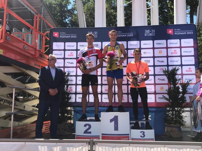 Drugi finiszował srebrny medalista z dystansu 100 metrów Albert Komański z Resovii Rzeszów, który na ostatnich metrach niespodziewanie wyprzedził Łukasza Żoka. Komański finiszował z czasem 20,89 s, a Żok nie złamał bariery 21 sekund i ukończył bieg z wynikiem 21,06 s. z brązowym medalem.