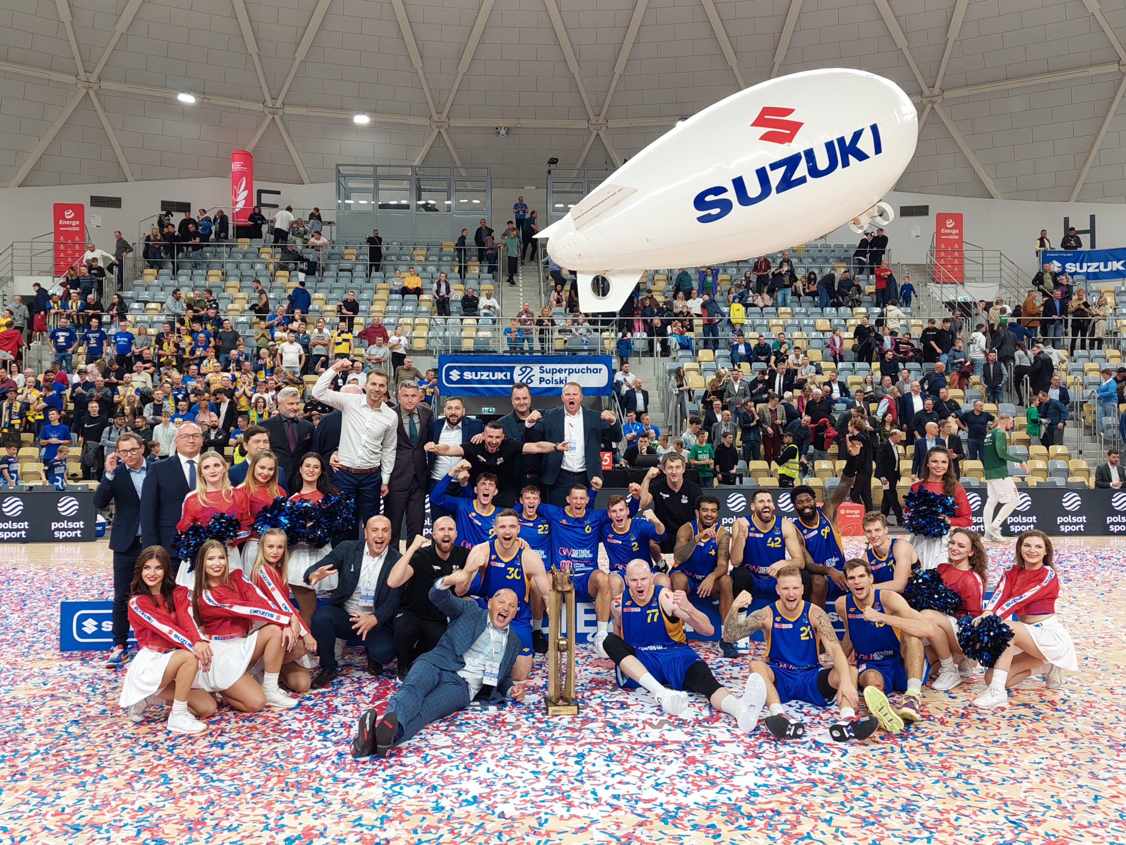 Piękny moment w Stegu Arenie w Opolu dla koszykarskiego Ostrowa. Damian Kulig, kapitan BM Stali uniósł w górę piękne trofeum – Puchar im. Adama Wójcika za zwycięstwo w Suzuki Superpucharze Polski. Ostrowski zespół ograł w nim Śląsk Wrocław 94:81, a MVP Superpucharu został Damian Kulig.