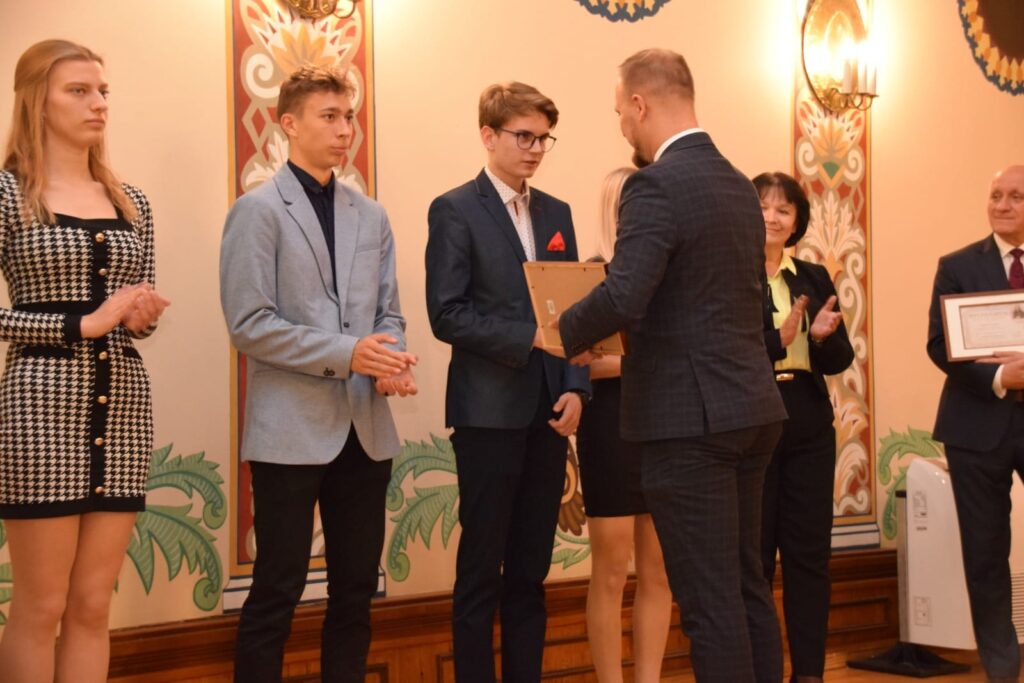 Mateusz Cieszyński – jest ambitnym, pracowitym i sumiennym uczniem, aktywnie działa w Samorządzie Uczniowskim pełniąc w nim rolę przewodniczącego. Wykazał wzorową postawę, poprzez czynne uczestnictwo w pracach na rzecz pomocy osobom poszkodowanym konfliktem zbrojnym w Ukrainie, angażując się w cykliczne prace w Kinie Komeda.Zawód technik przemysłu mody, w którym się kształci traktuje z ogromną pasją. Mateusz wykazuje duży talent i umiejętności zawodowe co udowodnił projektując i wykonując kolekcję odzieży „Niechaj wszystko sztuką będzie” zaprezentowaną na IV Ogólnopolskim Konkursie Dla Młodych Projektantów i Krawców “Szmaragdowy Guzik” w Lesznie. Tematem przewodnim Konkursu była: „Pamięć rzeczy, czyli cyrkulacja i personalizacja w modzie”. Mateusz choć był jednym z najmłodszych uczestników otrzymał wyróżnienie za „Wyjątkowe wyczucie współczesnej mody”. Wybrany model z kolekcji stworzony został z materiałów z tak zwanej „drugiej ręki” w myśl koncepcji zero waste i wykonany z najwyższą dbałością o szczegóły.