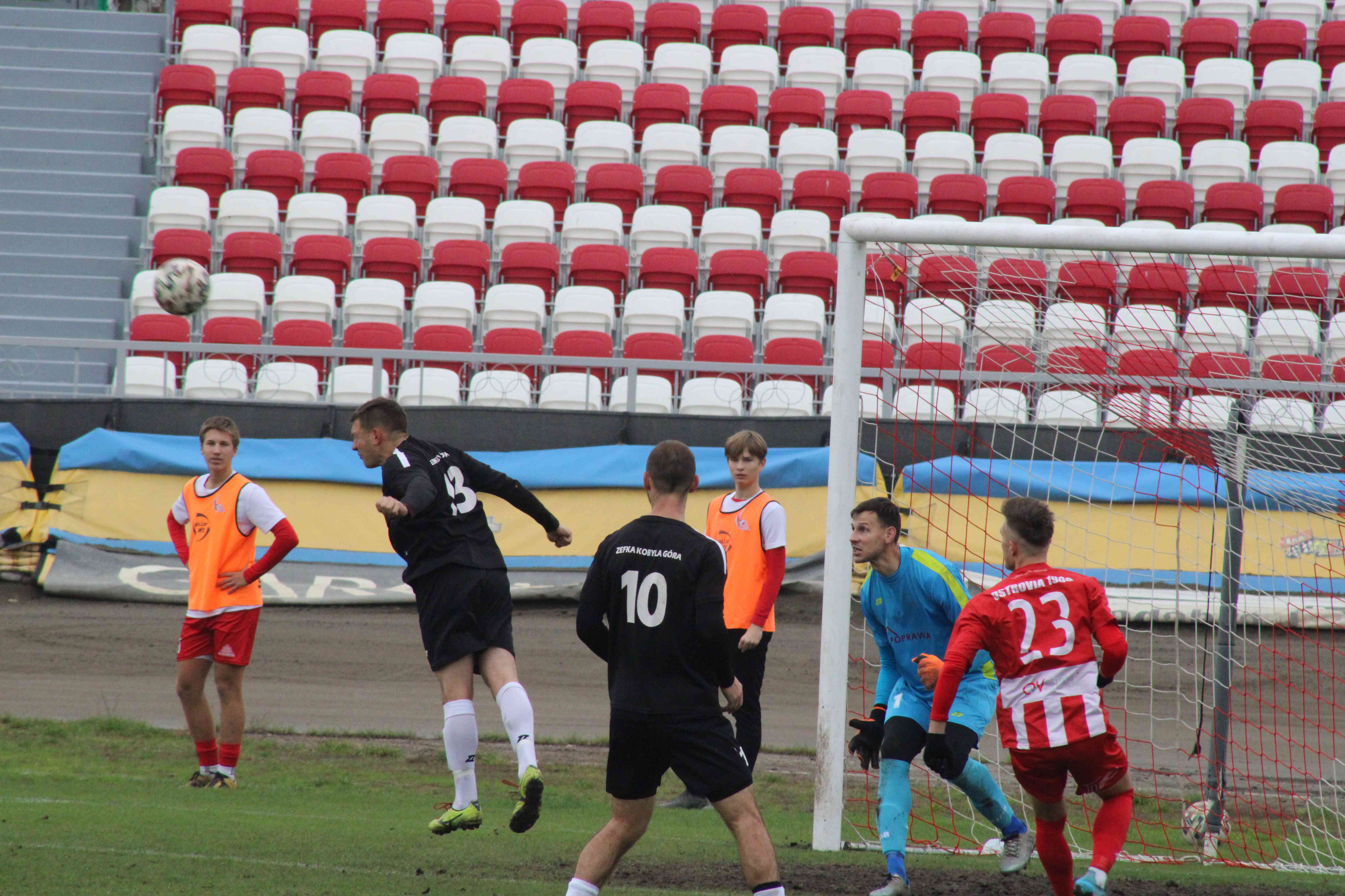 Ostrovia 1909 Ostrów miała jeszcze sporo sytuacji, ale więcej goli już nie padło. W ostatniej akcji doliczonego czasu gry po wrzutce z rzutu wolnego w pole karne, gospodarze byli bliscy szczęścia, ale bramkarz Zefki wyciągnął się jak struna i uratował remis 1:1 dla zespołu z Kobylej Góry. Podział punktów z pewnością bardziej ucieszył przyjezdnych.