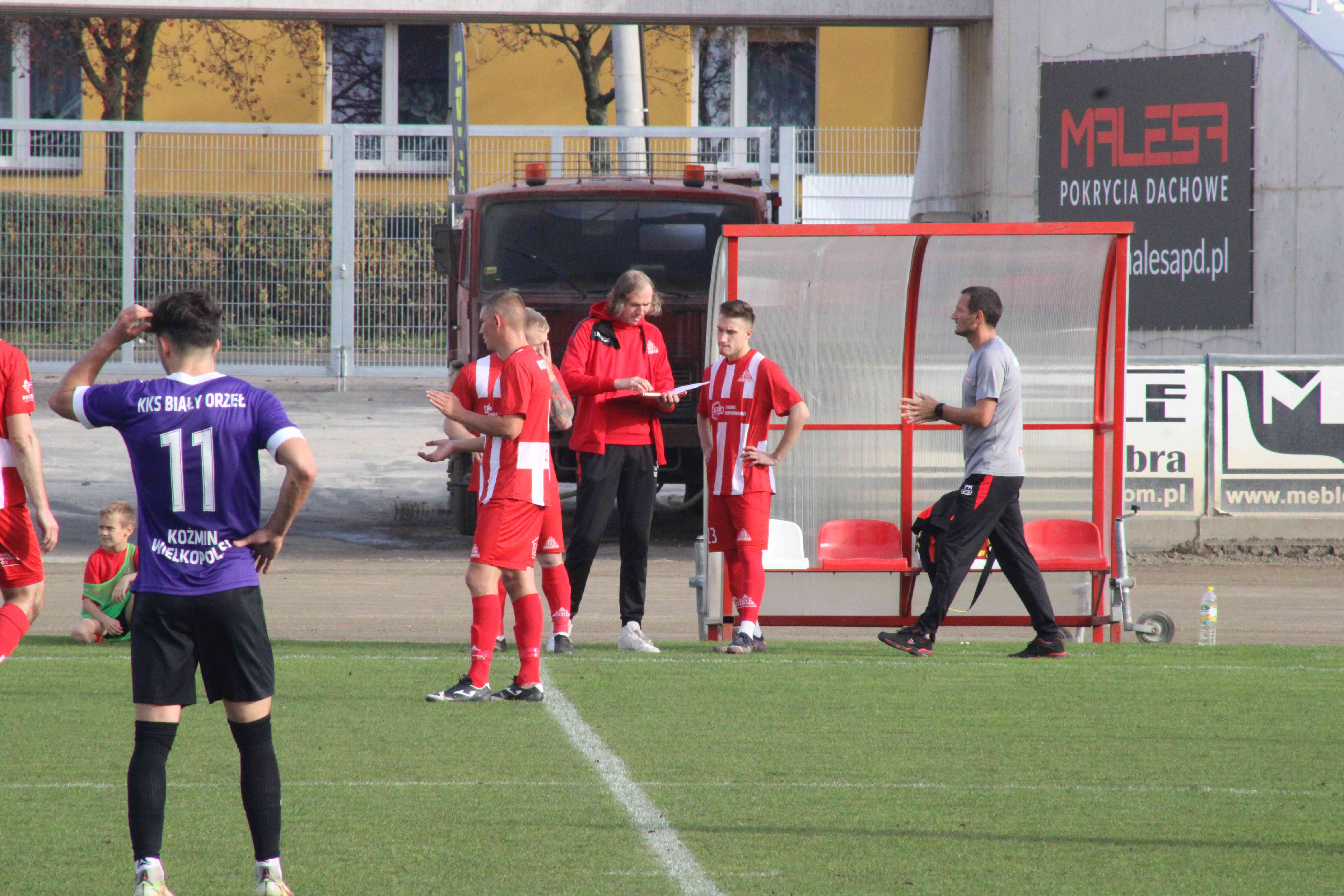 W piątej minucie rzutu karnego nie wykorzystał Karol Krystek. Górą był bramkarz Białego Orła Mateusz Wronecki. Wynik w 23 minucie otworzył Mikołaj Marciniak, który zdobył gola po dośrodkowaniu z rzutu rożnego Piotra Skrzypczaka. Na 2:0 w 37 minucie podwyższył Jakub Jędrzejak, a cztery minuty później było już 3:0 po golu Mateusza Rachwalskiego.