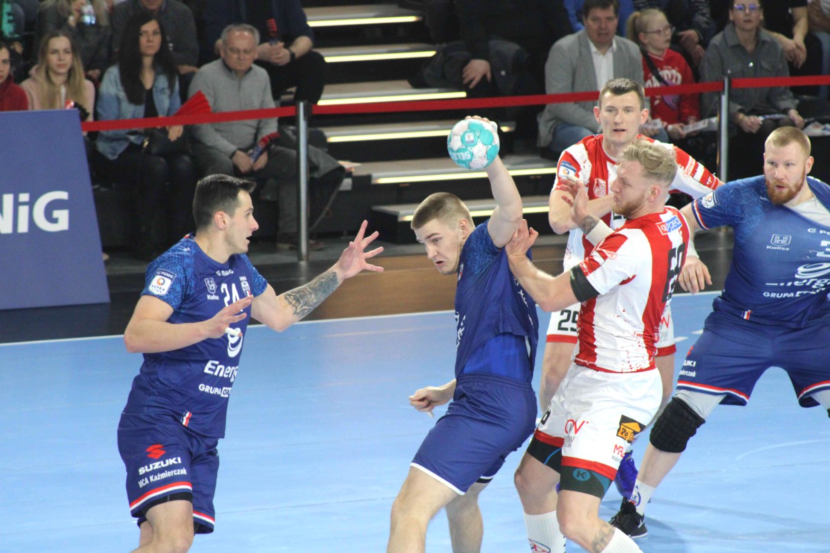 W 35 minucie po bramce Ksawerego Gajka było 16:10 dla gospodarzy derbowego pojedynku. Po kontrze Mateusza Góralskiego w 40 minucie kaliszanie przegrywali już tylko 14:18. W 45 minucie przewaga stopniała z 6 do 3 bramek. Pogorszyła się skuteczność gospodarzy, którzy nie potrafili wykorzystać sytuacji sam na sam z Krzysztofem Szczeciną lub obijali poprzeczkę strzeżonej przez niego bramki.