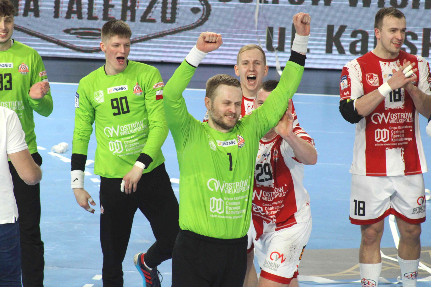 Arged KPR Ostrovia wygrała dziewiąty mecz w sezonie i awansowała na siódme miejsce w tabeli PGNiG Superligi. Nie dziwi zatem szalona radość zawodników, trenerów i zarządu oraz wspaniałej atmosfery na trybunach Areny Ostrów, gdzie kolejny raz zasiadł komplet publiczności.