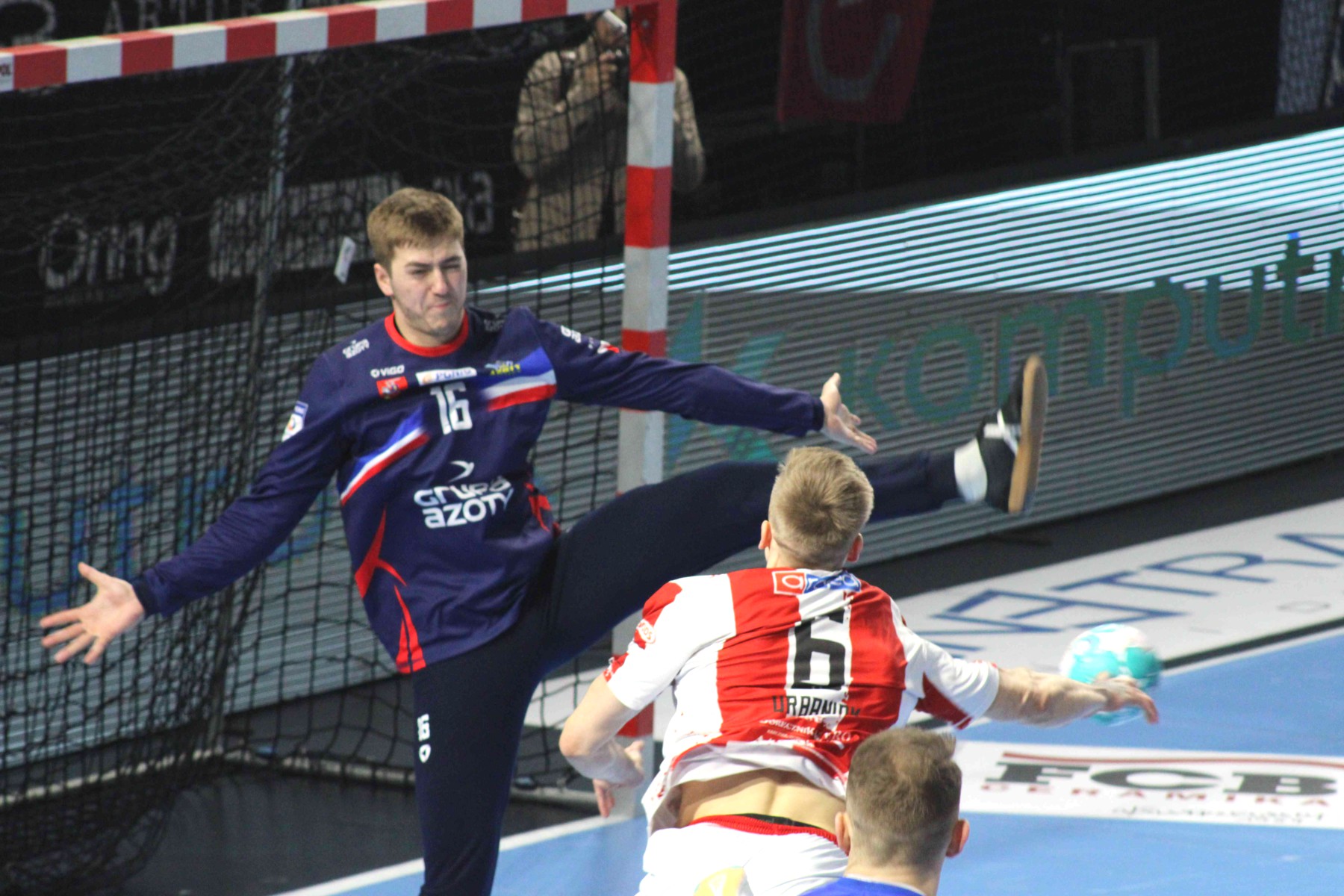 Chwilę później skrzydłowy ostrowian przegrał pojedynek z Wojciechem Boruckim w sytuacji sam na sam. Szkoda, bo beniaminek nie wykorzystał okazji do powiększenia przewagi. Końcówkę przed przerwą rozegrał bowiem fatalnie. Na 30 sekund przed końcem na 2 minuty wyrzucony z boiska został Krzysztof Misiejuk. W efekcie zamiast trafić bramkę na 15:11, Azoty obroniły i trafiły z ponad połowy boiska do pustej bramki, ustalając wynik po pierwszej połowie 14:12.