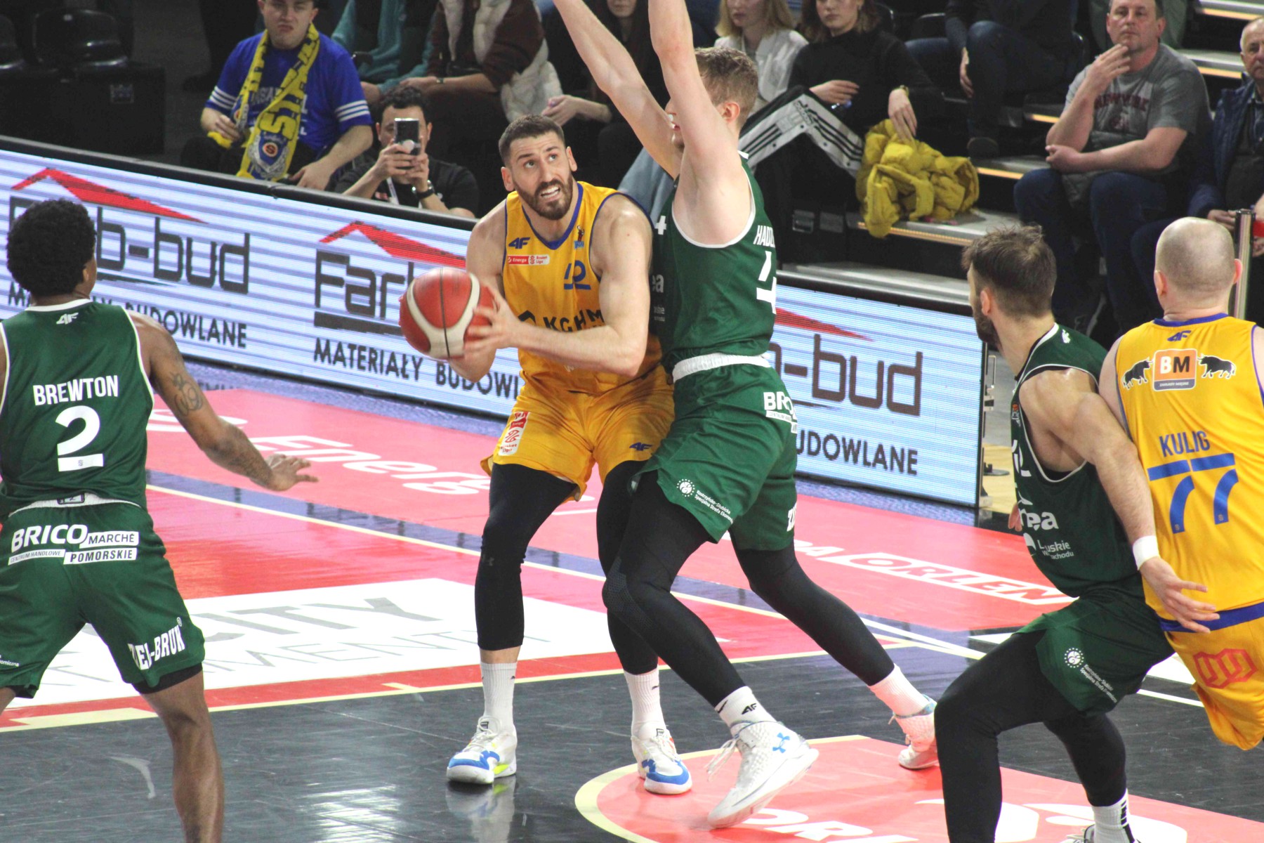 W 11 minucie po trójce Nemanji Djurisicia Stal wygrywała 37:23. Nieco ponad 2 minuty później było już tylko 39:24, po tym jak piąty raz z dystansu celnie trafił Bryce Alford, który miał w tym momencie na koncie już 17 punktów. Szaleństwo rzutowe trwało w najlepsze. Żołnierewicz zmniejszył w 14 minucie straty swojej drużyny do czterech punktów, a po trójce Adonisa Thomasa Stal ponownie prowadziła dziesięcioma „oczkami”.