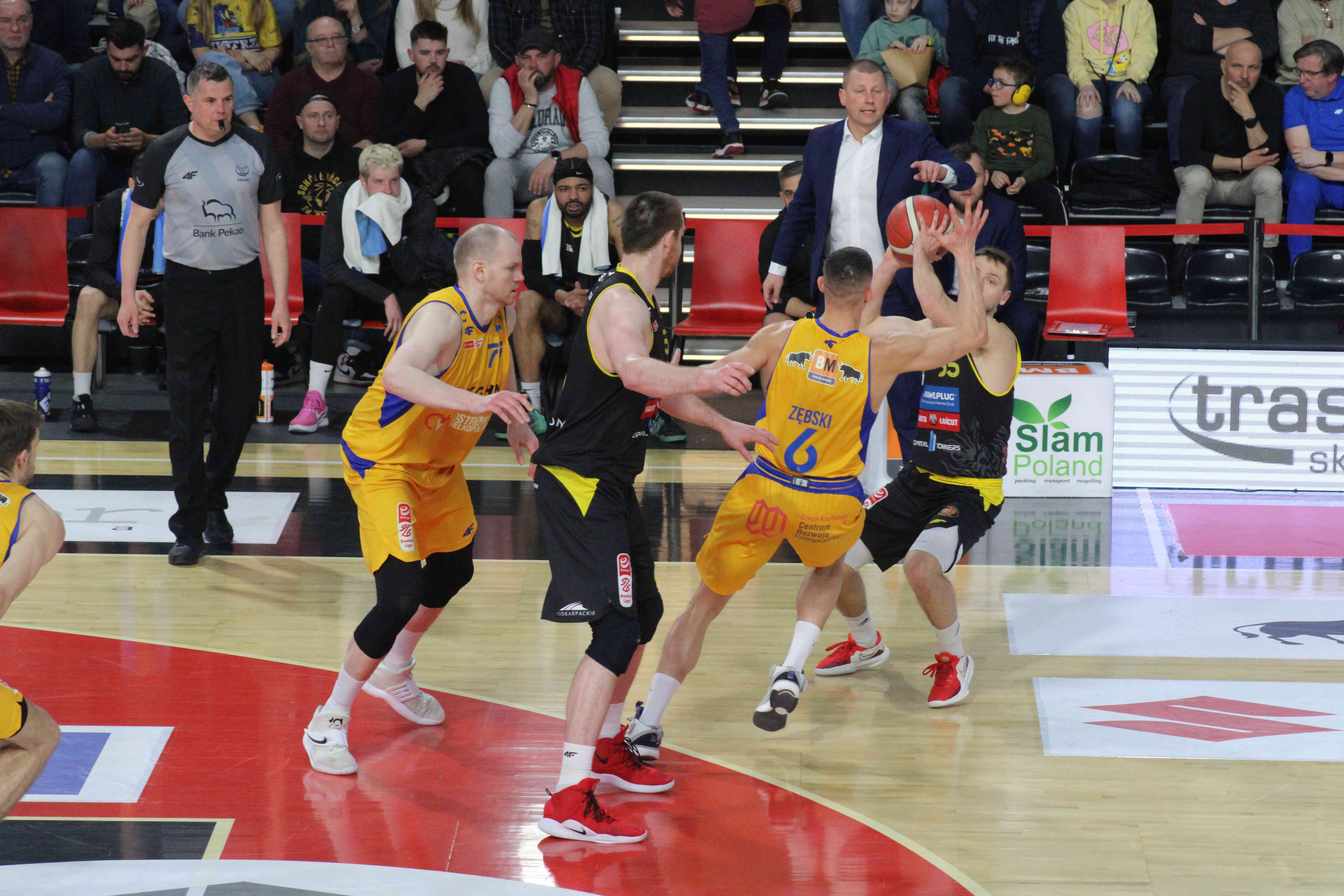 Na początku trzeciej kwarty ostrowianie zaczęli bronić tak, jak życzyłby sobie tego trener Urban. Przewaga szybko urosła do 7 punktów, ale problem robił się momentami w ataku W efekcie Sokół szybko odrabiał straty po kontrach. Na domiar złego w 25 minucie trzeci faul złapał Skele.