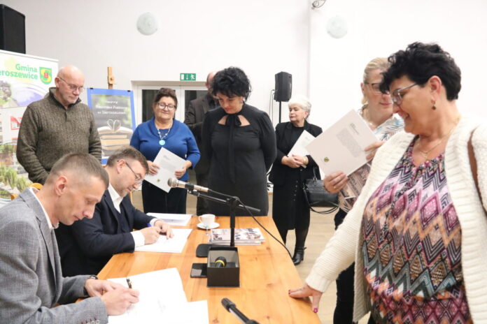 Album „Gmina Sieroszewice na starych pocztówkach” Adriana Matysa i Anatola Piaskowskiego został zaprezentowany podczas spotkania w sali GOK.