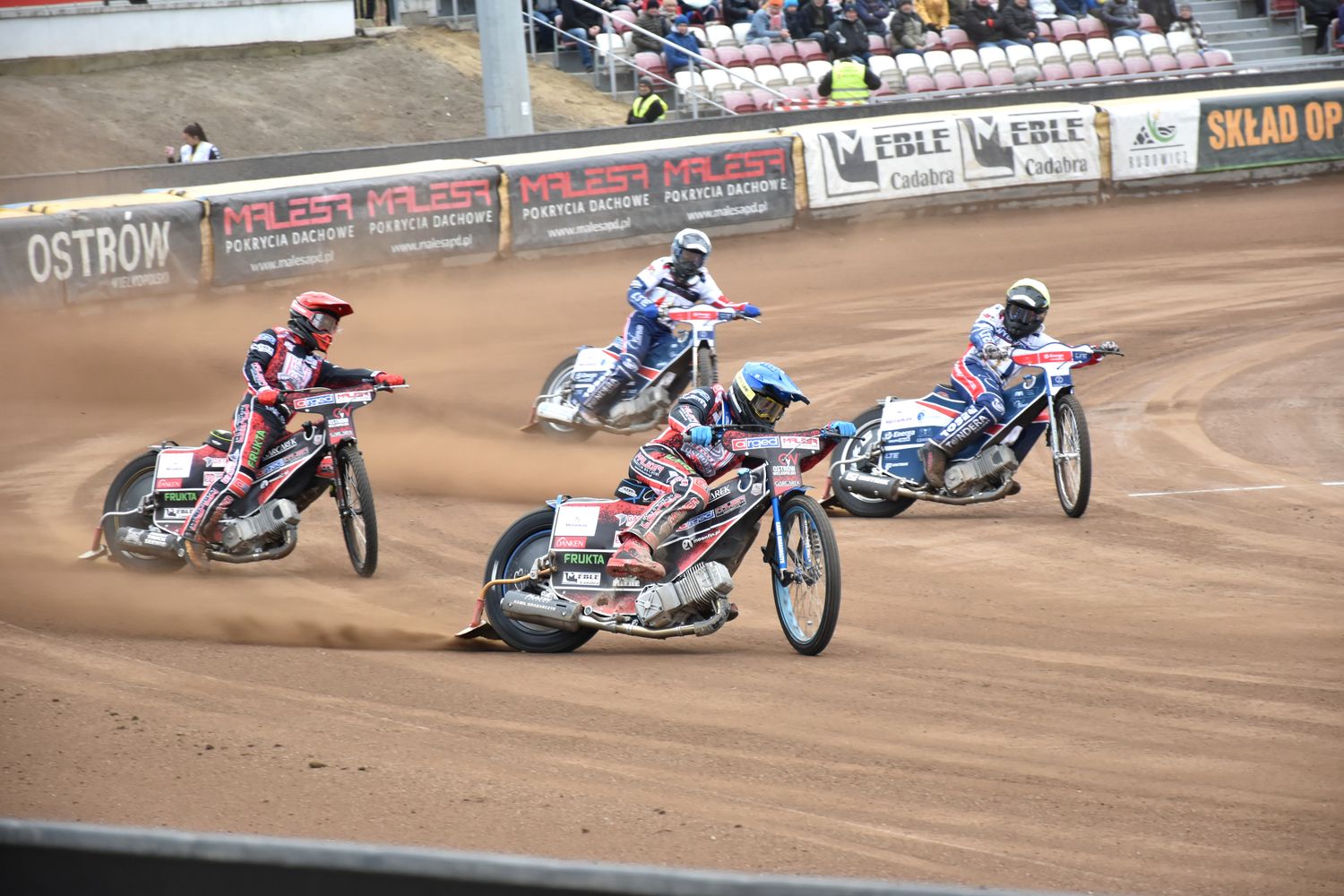 Goście z Gdańska przed meczem w Ostrowie wysłali helikopter po swojego zawodnika Toma Brenanna, bo chcieli zwiększyć swoje szanse na końcowy sukces w starciu z Arged Malesa. Brytyjczyk, który spieszył się na zawody z Pardubic, dotarł na piąty bieg. Jego koledzy mieli już wtedy ogromne kłopoty. Podopieczni Mariusza Staszewskiego imponująco weszli w mecz i prowadzili 25:4. Niemoc przyjezdnych najlepiej obrazuje bieg młodzieżowy, który przegrali 0:5, bo najpierw za dwie minuty wykluczony został Miłosz Wysocki, a później w taśmę wjechał Eryk Kamiński.