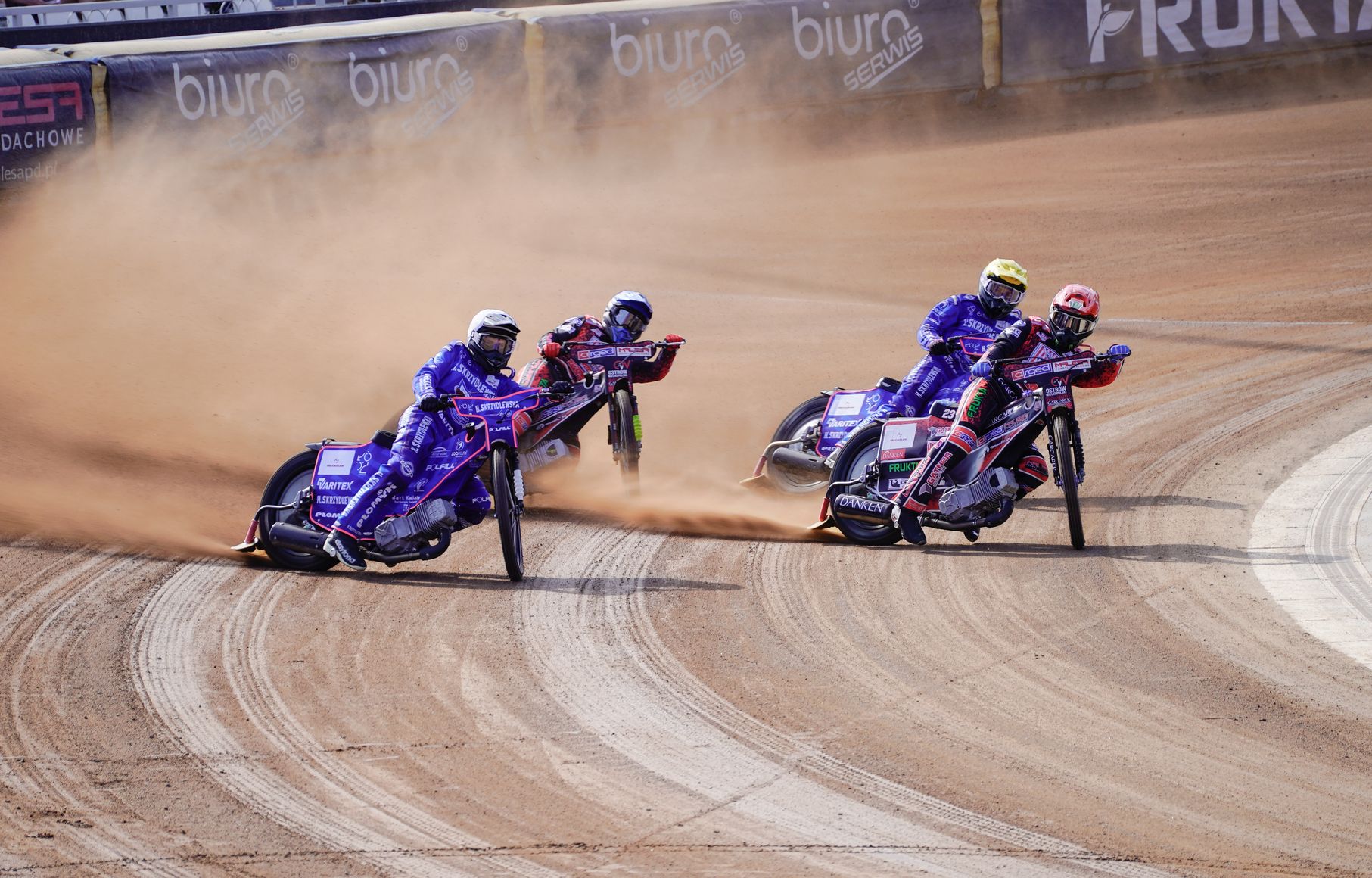 Szkoleniowiec gości zaskoczył składem, bo po bardzo długiej przerwie do zestawienia jego drużyny wskoczył Oskar Polis, który zastąpił Daniela Kaczmarka. Co ciekawe, właśnie ten zawodnik wygrał inauguracyjny bieg i wyprowadził rywali na prowadzenie. Łodzianie po pierwszej serii prowadzili w Ostrowie 13:11, co było sporym zaskoczeniem.