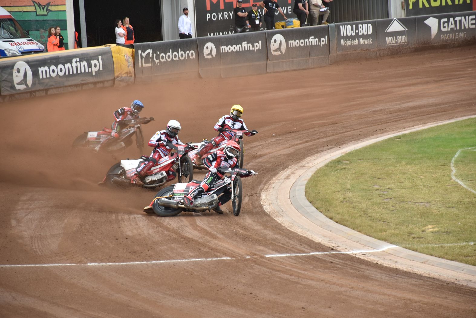 Monnfin Malesa chciała jednak wykorzystać własny tor i sprawić niespodziankę. Problem w tym, że miejscowi w zasadzie zostali go pozbawieni jeszcze przed pierwszym biegiem, bo nawierzchnia została przykryta plandeką ze względu na niepewne prognozy pogody. Goście to wykorzystali i świetnie weszli w spotkanie. Wynik pierwszej serii 16:8 dla bydgoszczan mówił zresztą wszystko. Ich dominacja nie podlegała dyskusji. W ekipie z Ostrowa Wielkopolskiego jako jedyny trójkę na swoim koncie zdołał zapisać Sebastian Szostak. Pozostałe biegi wygrywali przyjezdni.