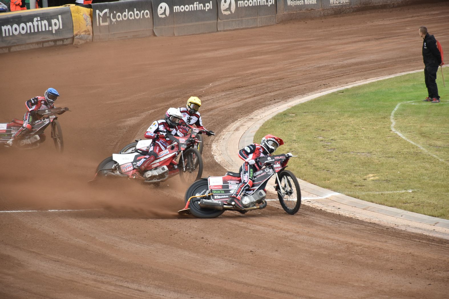 Monnfin Malesa chciała jednak wykorzystać własny tor i sprawić niespodziankę. Problem w tym, że miejscowi w zasadzie zostali go pozbawieni jeszcze przed pierwszym biegiem, bo nawierzchnia została przykryta plandeką ze względu na niepewne prognozy pogody. Goście to wykorzystali i świetnie weszli w spotkanie. Wynik pierwszej serii 16:8 dla bydgoszczan mówił zresztą wszystko. Ich dominacja nie podlegała dyskusji. W ekipie z Ostrowa Wielkopolskiego jako jedyny trójkę na swoim koncie zdołał zapisać Sebastian Szostak. Pozostałe biegi wygrywali przyjezdni.